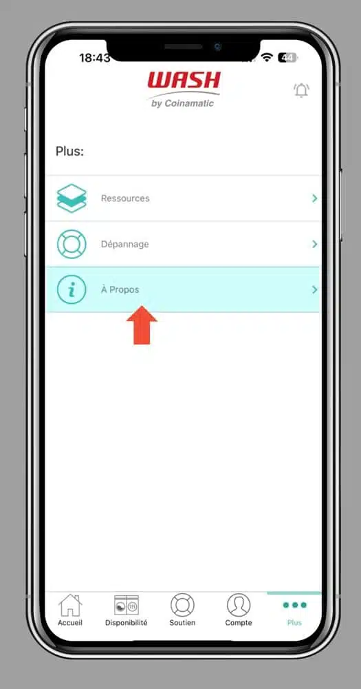 Comment trouver la version de l’application Quelle version de l’application WASH-Connect est-ce que j’utilise? Une fois connecté à l’application Wash-Connect, taper sur Plus et À propos.